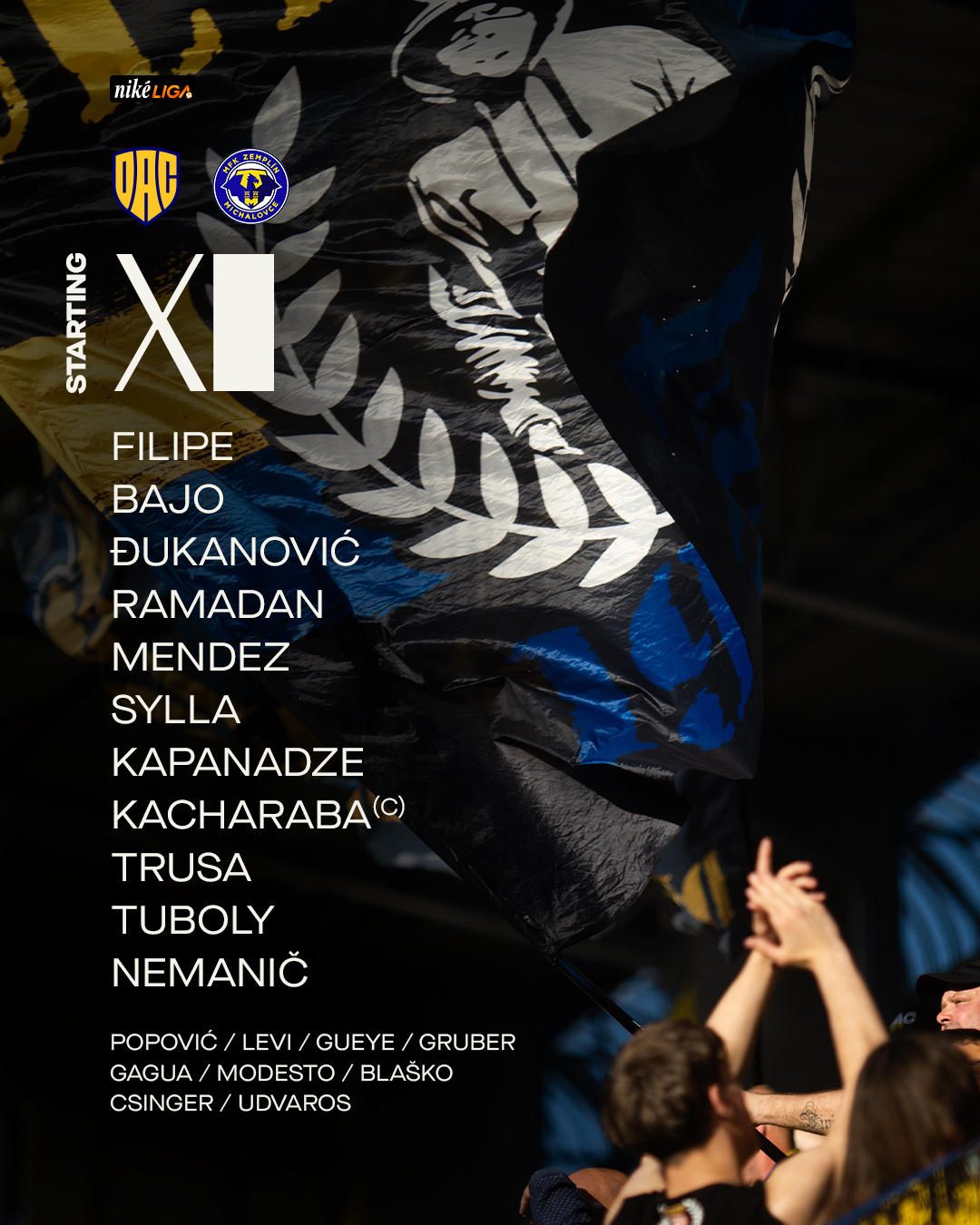 Filipe - Kapanadze, Kačaraba, Nemanič, Mendez - Tuboly, Bajo, Djukanović - Ramadan, Trusa, Sylla