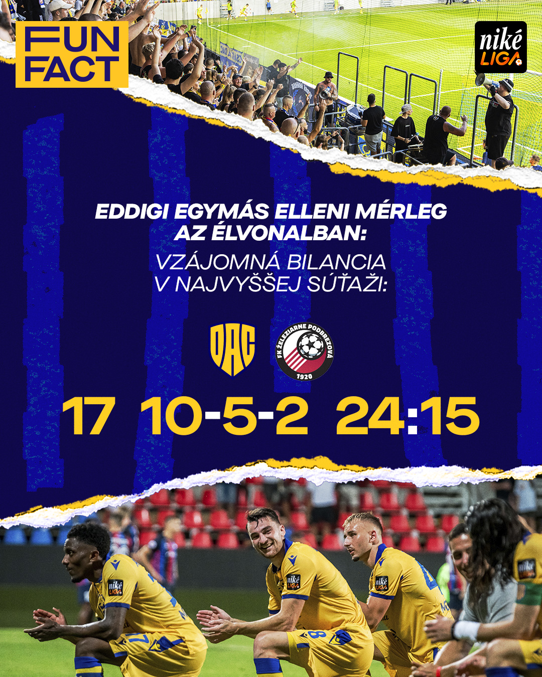 V poslednom kole pred októbrovou reprezentačnou prestávkou privítame aktuálne druhým tím tabuľky. Stretnutie DAC-Podbrezová má výkop v nedeľu o 17.30 h.