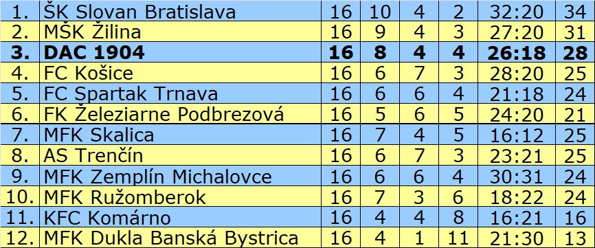 A kerek 30. idényét zárta a DAC az 1. ligában, 28 naptári év (és 18 idény) után sikerült végre pozitív oldalra billenteni az összesített mérlegünket, amely a következő: 942 mérkőzés, 354-238-350, a gólarány 1192:1277