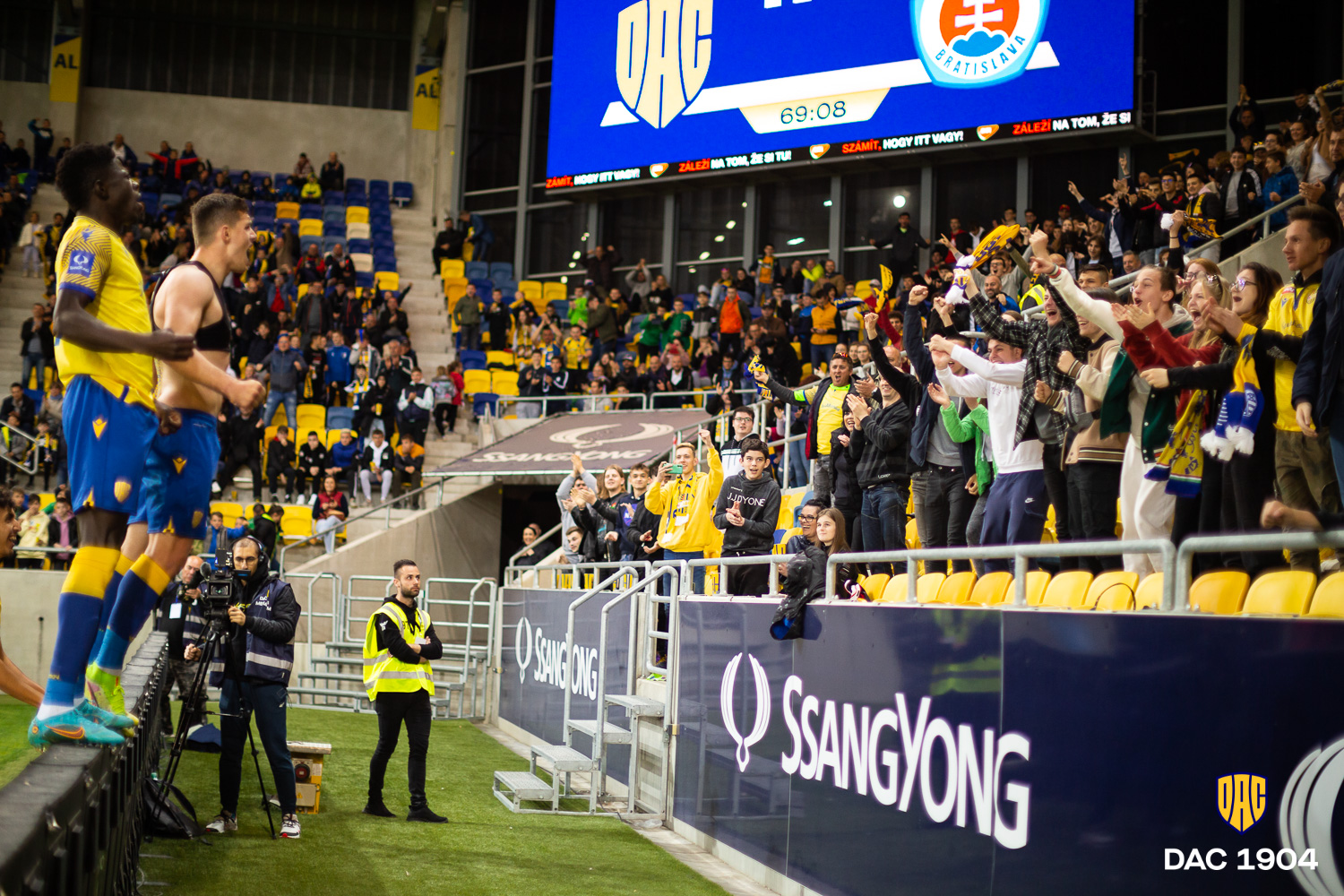 Nebol to prvý - a určite ani posledný - prípad, kedy náš klub pozval na stretnutie mladých fanúšikov z okolia. Mimoriadnym potešením je, že deti a študenti si mohli užiť víťazstvo v derby nad Slovanom a ňom sa stretnúť s hráčmi DAC-u, ktorí sa im po záverečnom hvizde prišli poďakovať za hlasnú podporu.