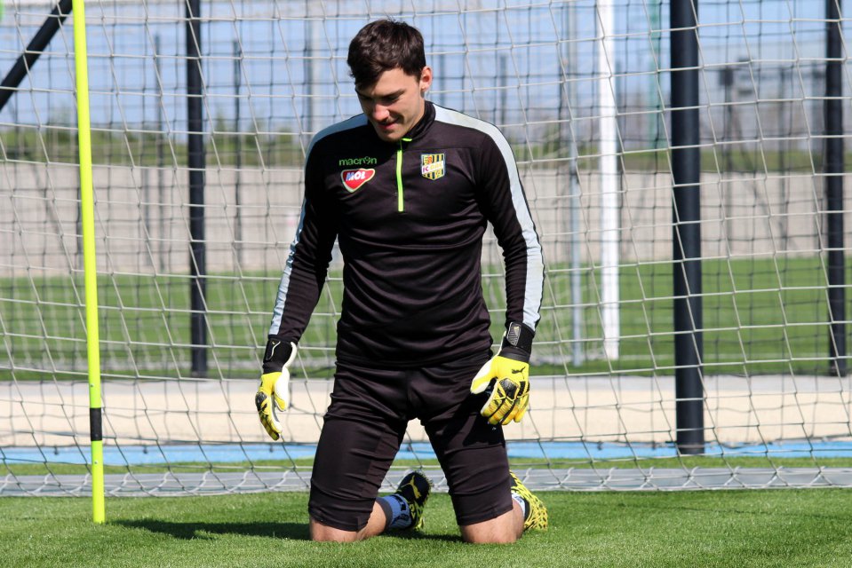 Martin Jedlička, Adrián Slančík and Benjamin Száraz in training with goalkeeper coach Martin Raška at MOL Academy.