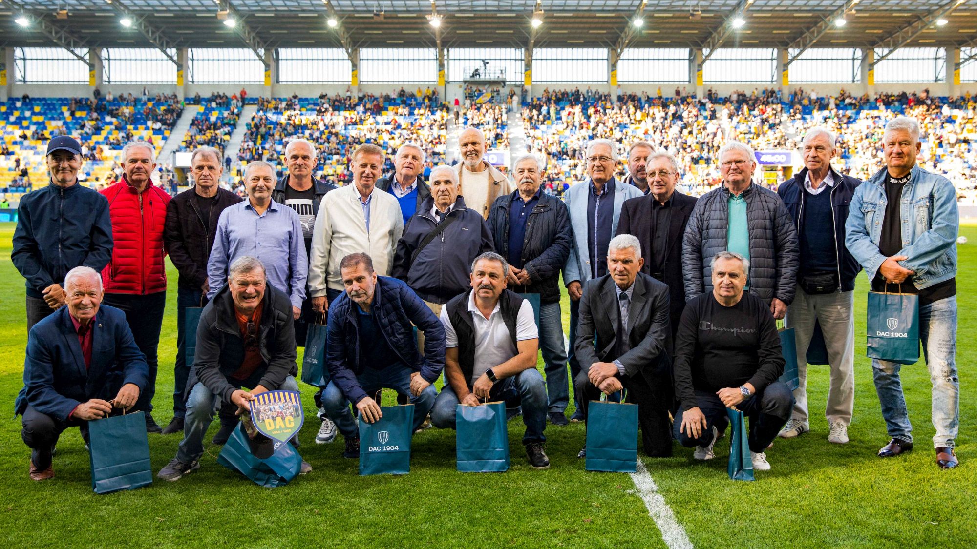 A kerek évfordulóra a májusi DAC-Nagyszombat (1:0) bajnoki mérkőzés alkalmával is visszaemlékeztünk, amelyen fogadtuk az 1985-ös bajnokcsapat tagjait.