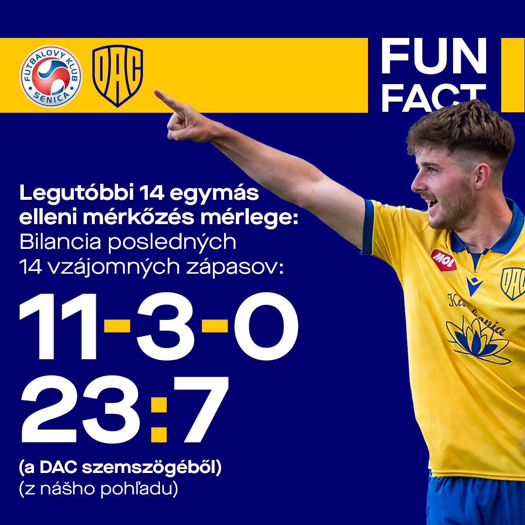 A Szenice a 13. élvonalbeli idényét kezdte meg, 2009 óta folyamatosan a legjobbak között szerepel. Az egymás elleni mérleget az utóbbi években fordítottuk a magunk javára: a legutóbbi 14 mérkőzésen 3 döntetlen mellett 11 DAC-győzelem született. Tavaly ősszel egy gólgazdag, 4:2-es találkozón zsákmányoltunk három pontot Szenicén, az őszi zárófordulóban szintén sima győzelmet arattunk a MOL Arénában. Holnap 30. alkalommal találkozunk egymással.