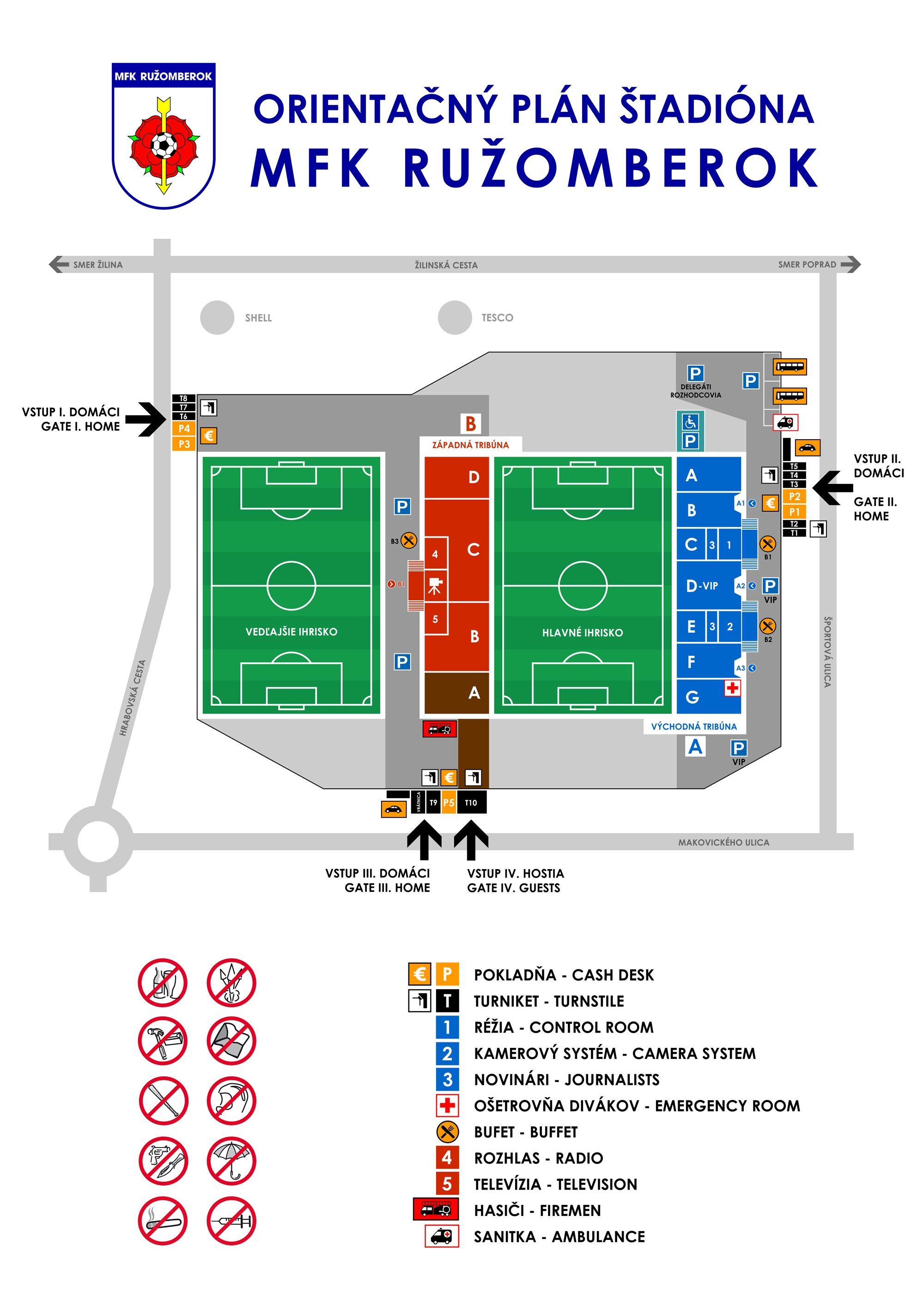 A belépőjegyek árusítása csak a helyszínen fog zajlani. A rózsahegyi stadion jegypénztárai és beléptető kapui két órával a mérkőzés előtt, 15:30 órakor nyitnak. Megkérjük a szurkolókat, hogy a szigorított biztonsági előírások miatt időben érkezzenek a mérkőzésre. Azok a személyek, akik láthatólag alkohol vagy egyéb szerek befolyása alatt állnak, nem lesznek beengedve a stadionba; ugyanez azokra is érvényes, akiknél az előbb említett anyagokat találnak a szervezők. Kijelölt parkoló a vendégszektor bejáratánál lesz. Kérjük a szurkolókat, hogy figyeljék a szervezők utasításait.