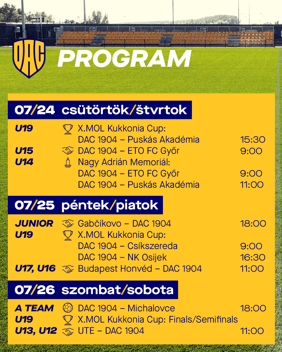Hétvégi programdömping a DAC-nál! Nemzetközi tornák itthon, felkészülési mérkőzések az utánpótlásnál, és újra pályán az A-csapat is – ezúttal már tétmeccsen!