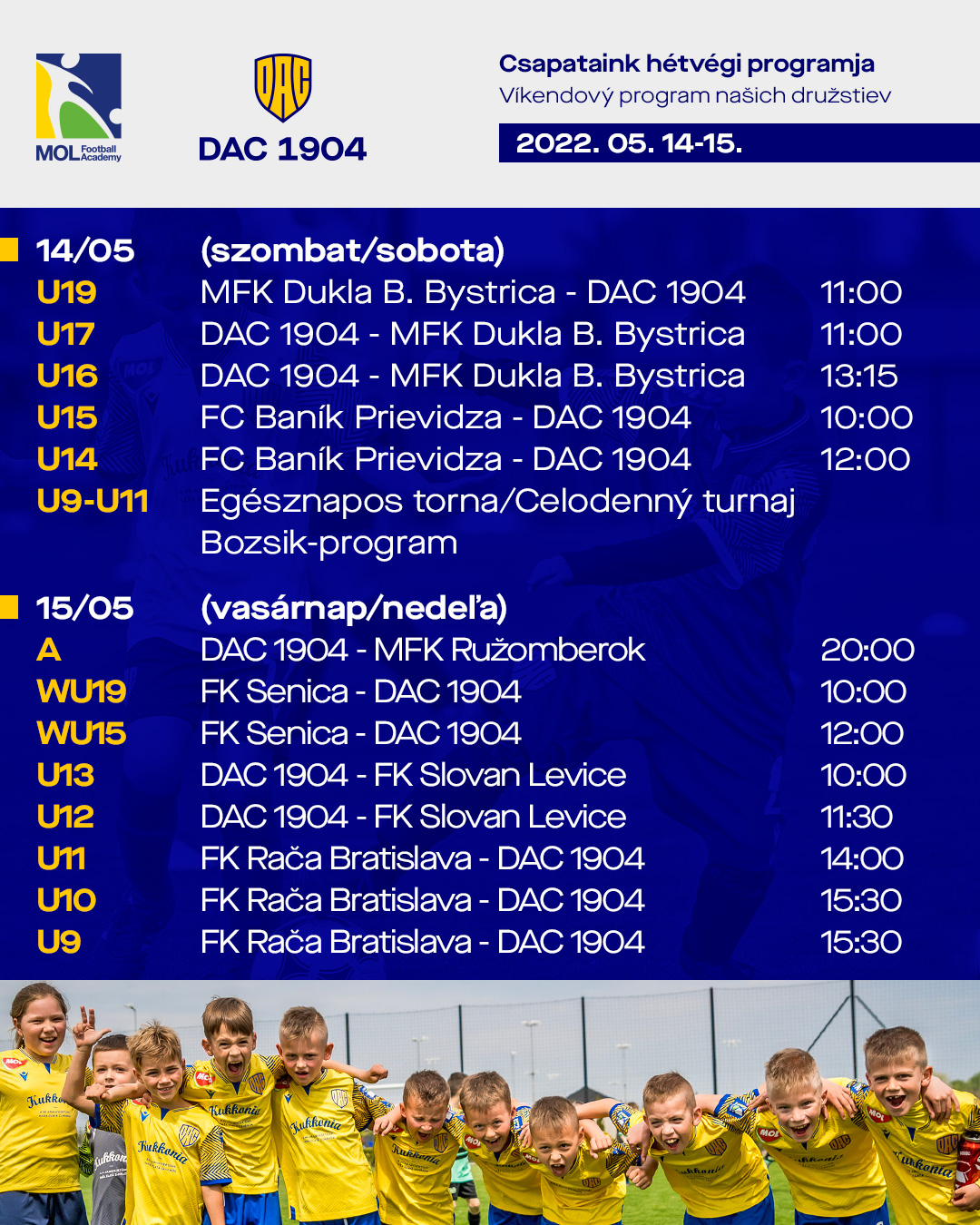 Íme, a sárga-kékek aktuális hétvégi futballmenüje – szurkolóinkat sok szeretettel várjuk a pályák mellé! pé 13.5.2022 Ján Ficza