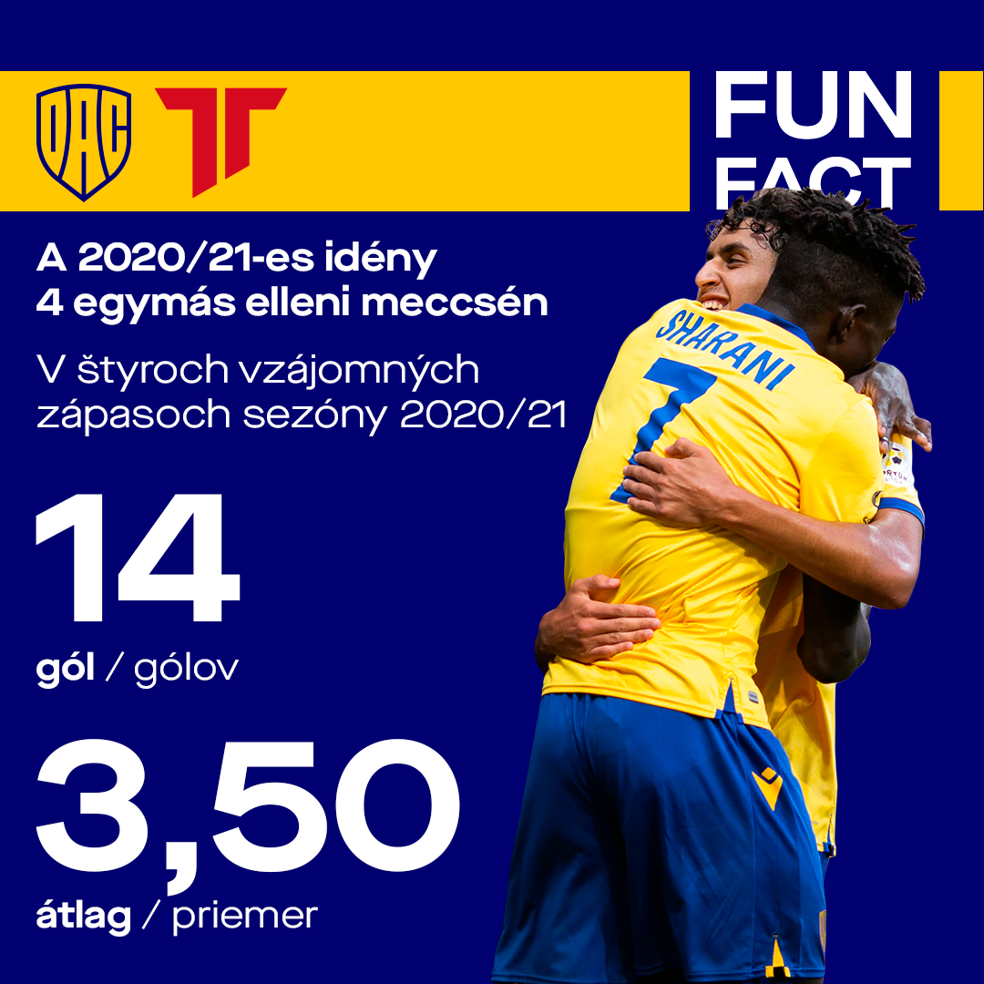 Vasárnap a két csapat 32. alkalammal találkozik a legfelsőbb bajnokságban, 16. alkalammal küzdünk meg velük hazai pályán. A találkozóink nagyrészén a nézők nem unatkoznak: az eddigi 3,00 gólátlag, valamint a legutóbbi tíz mérkőzésen összehozott 3,40-es gólátlag valóban gólgazdag találkozót predesztinál. Tavaly ősszel a MOL Arénában 3:1-re fordítottunk, tavaszi bajnokság első fordulójában az új trencséni stadionban 3:3-as döntetlen lett a végeredmény. A rájátszásban további két mérkőzést vívtunk: először 2:0-ra nyertünk otthon, majd ismét döntetleneztünk idegenben, miután 1:1 lett a meccs vége Trencsénben.