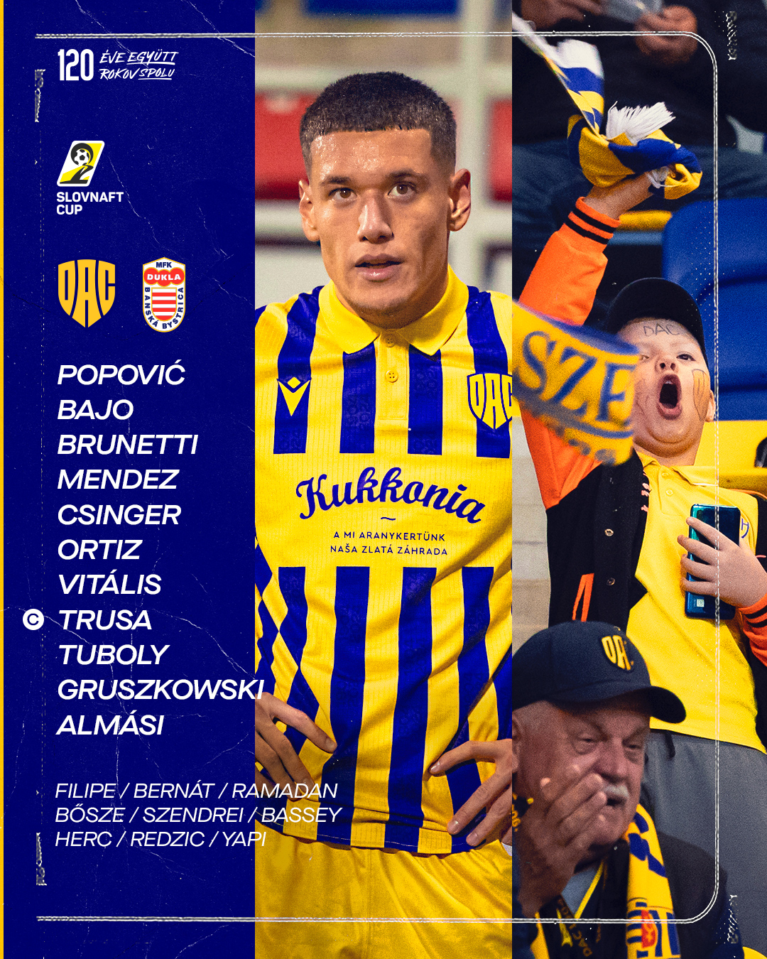Mutatjuk Xisco Muňoz vezetőedző kezdőcsapatét a Slovnaft Cup mai nyolcaddöntőjén. Hajrá DAC!
