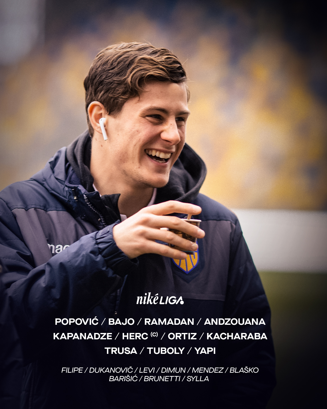 Popović – Kapanadze, Kacharaba, Ortiz, Andzouana – Tuboly, Bajo, Herc – Yapi, Trusa, Ramadan