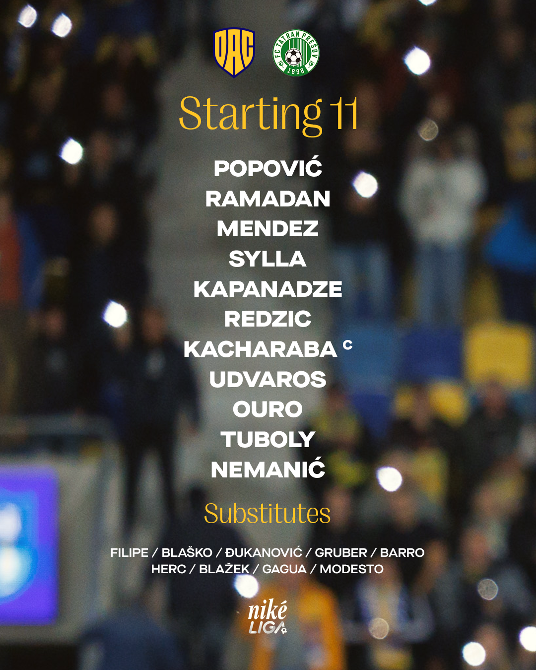 Popović – Kapanadze, Kacharaba, Nemanič, Mendez – Ouro, Tuboly, Udvaros – Redzic, Sylla, Ramadan