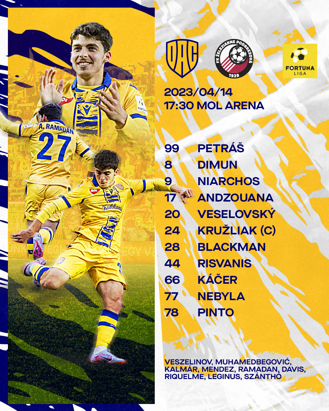 Így néz ki Adrian Guľa vezetőedző kezdőcsapata a mai bajnoki mérkőzésen. Hajrá DAC!
