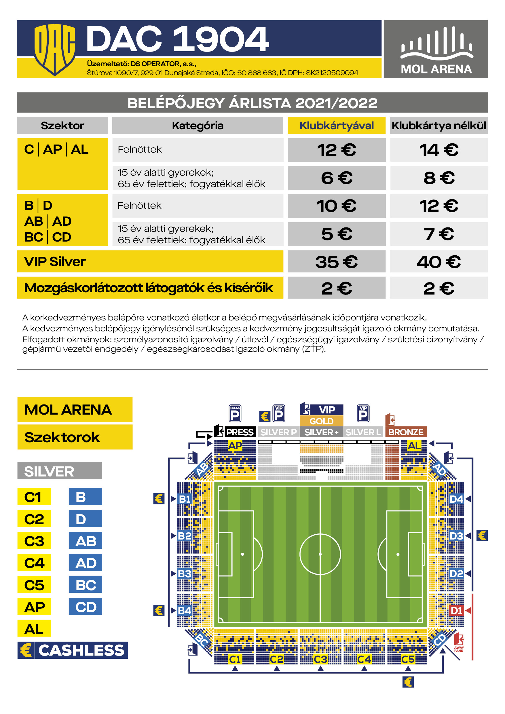 Link az online jegyvásárlásra: https://www.dac1904.sk/hu/zobraz.asp?id=online-jegyvasarlas