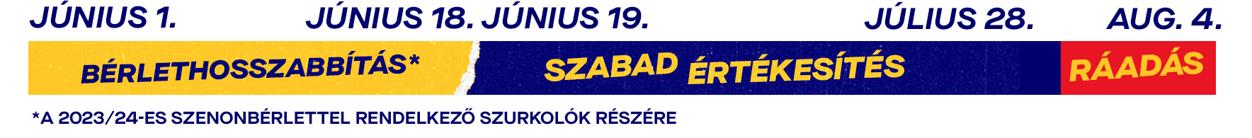 A teljes szezonbérletet és a félszezonos bérletet. A rájátszás bérlet (TOP5, TOP3, TOP2) meghosszabbítása nem lehetséges.