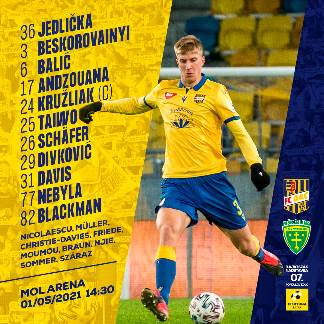 A sérült Kalmár mellett az eltiltott Ramirez is hiányzik a mai kezdőcsapatból. Hajrá DAC!
