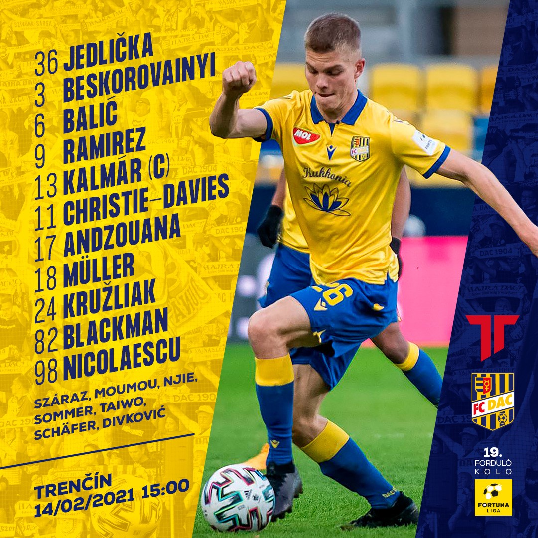 Jedlička - Kružliak, Müller, Beskorovainyi - Blackman, Christie-Davis, Balić, Andzouana - Kalmár - Nicolaescu, Ramirez.