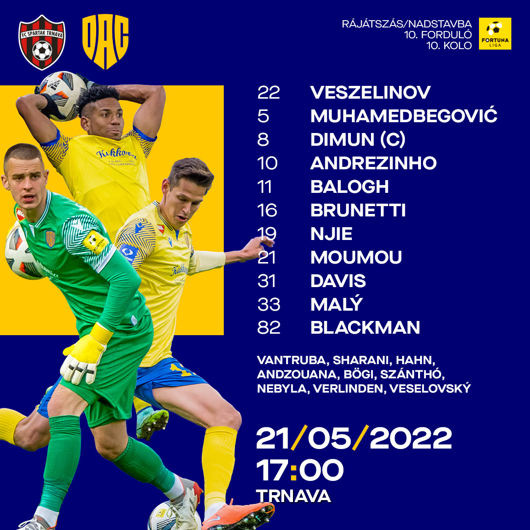 Veszelinov - Blackman, Malý, Muhamedbegovic, Brunetti, Davis - Dimun, Njie - Balogh, Moumou, Andrezihno.