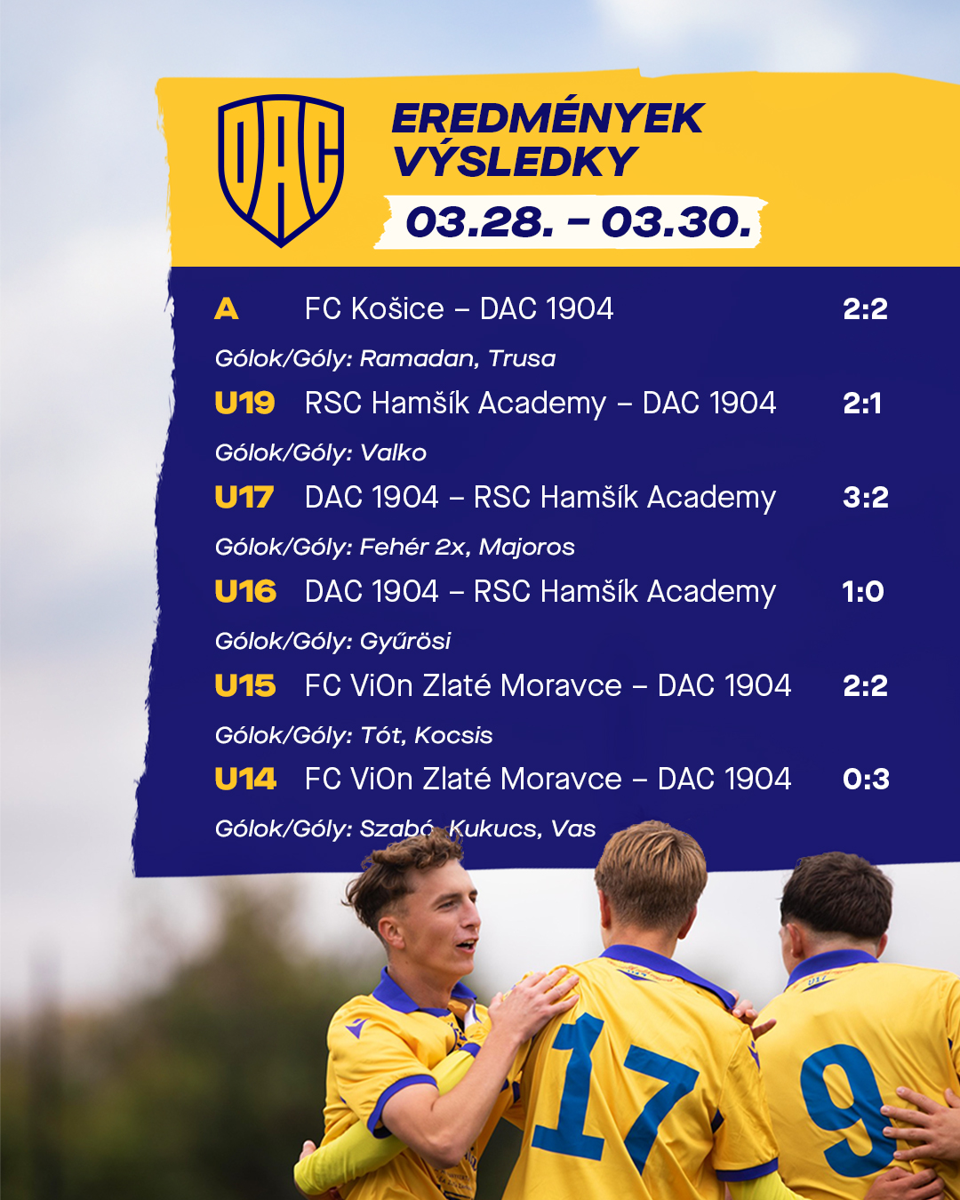 Výsledky našich tímov z víkendových zápasov