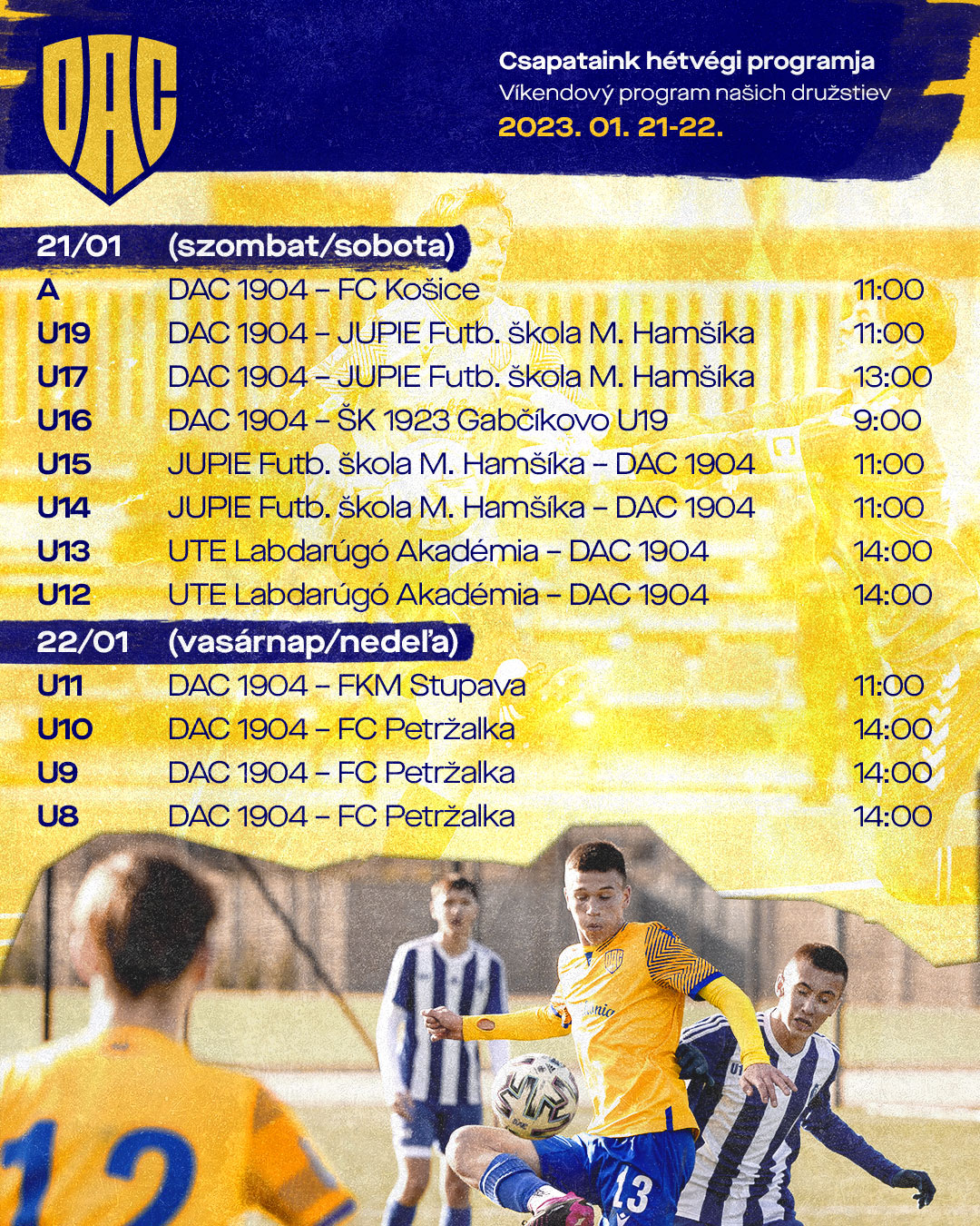 Pozrite si kompletný víkendový program prípravných zápasov žlto-modrých - srdečne vás pozývame na tribúny! pi 20.1.2023 KK