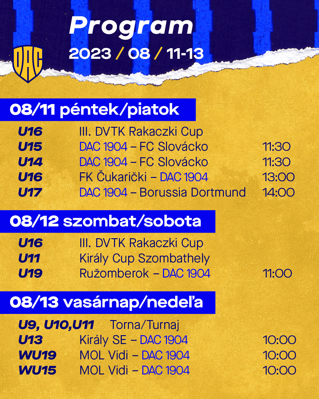 Náš tím U16 reprezentuje žlto-modrých v Diósgyőri (Maďarsko). Dnes od 13:00 hodiny skupinová fáza turnaja III. DVTK Rakaczki Cup sa končí zápasom FC Čukarički verzus DAC.