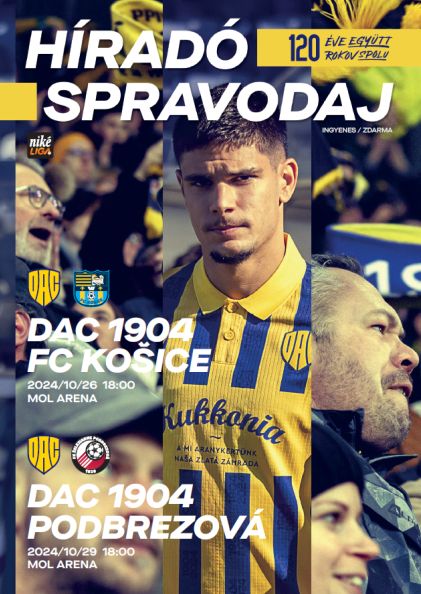 V sobotu 26. októbra 2024 o 18.00 h v 12. kole Niké ligy nastúpi DAC v MOL Aréne proti Košiciam.