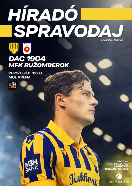 V poslednom zápase základnej časti Niké ligy nastúpi DAC v sobotu 1. marca 2025 o 15.30 h v MOL Aréne proti Ružomberku.