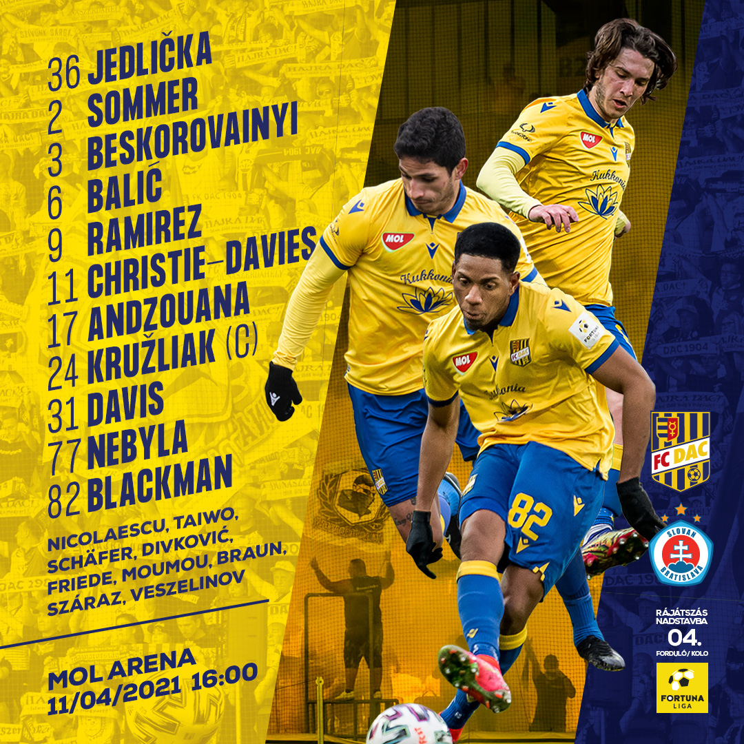 Chýbajú: Müller (trest), Kalmár (zranenie)