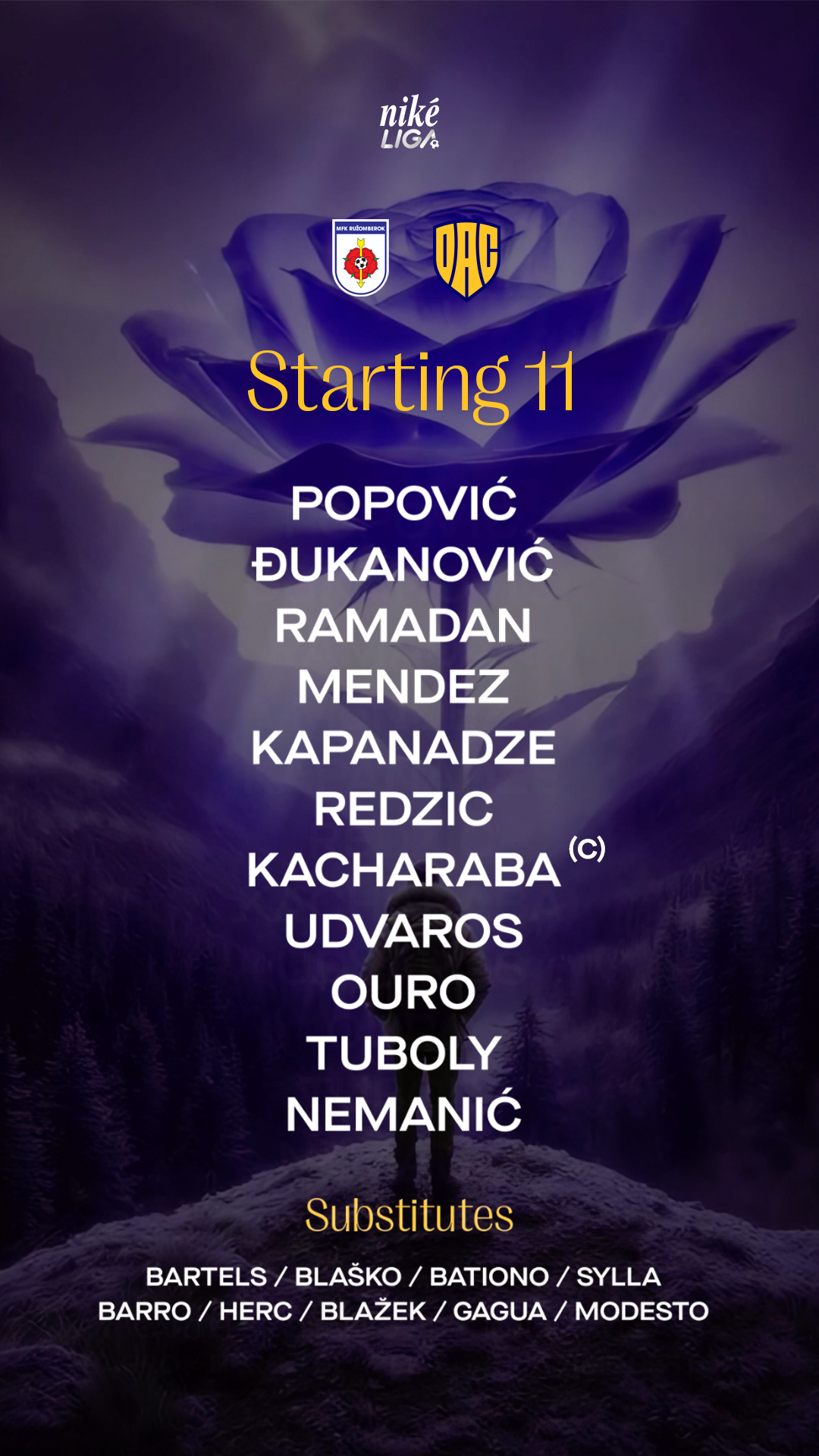 Popović - Kapanadze, Kacharaba, Nemanič, Mendez - Ouro, Tuboly, Udvaros - Redzic, Djukanović, Ramadan