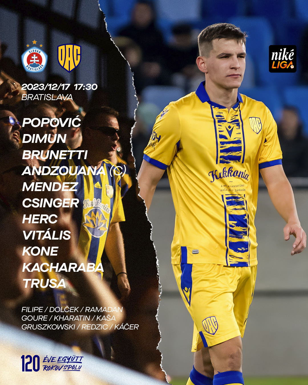 Základná zostava DAC-u v dnešnom zápase proti Slovanu