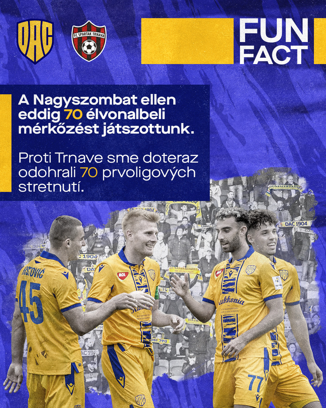 Proti Trnave a Slovanu sme odohrali doteraz 70 zápasov v najvyššej súťaži, čo z nich robí najčastejších súperov DAC-u. Tretia v tomto poradí je Žilina, na ktorú sme narazili 63-krát.