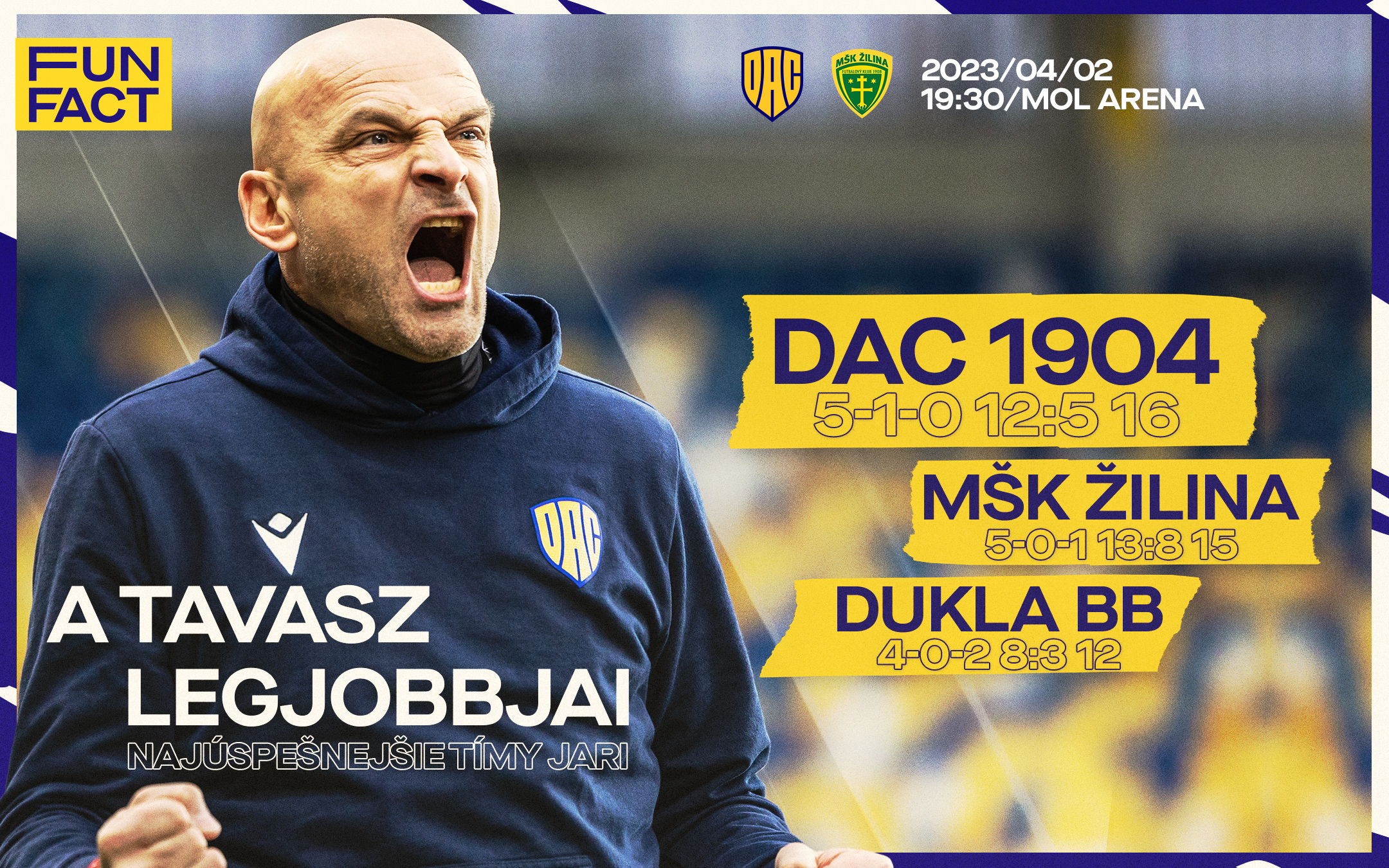 Nedeľa, 2. apríla 2023, 17.30: Trnava-Slovan, 19.30: DAC-Žilina