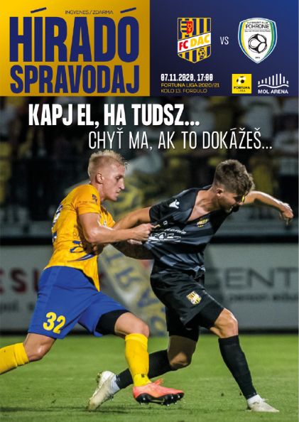 Po nečakanej pauze a pred novembrovou reprezentačnou prestávkou si v súboji dvoch žlto-modrých tímov zmeriame sily s posledným tímom tabuľky. Stretnutie DAC-Pohronie sa začína v sobotu o 17.00 hod.