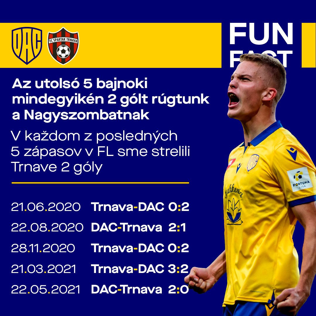 Posledný domáci zápas odohral DAC pred dvoma týždňami proti Slovanu. Hralo sa pred rekordnou návštevou Fortuna ligy za posledný rok a pol (7144) a vo výbornej atmosfére sme videli parádny futbal, ktorý priniesol remízu 1:1. Následne si žlto-modrí odniesli tri body z Ružomberka po víťazstve 2:1, ale v stredu prišlo pohárové sklamanie v Komárne. Na pôde druholigistu sme v 3. kole Slovnaft Cupu vypadli po jedenástkovom rozstrele.