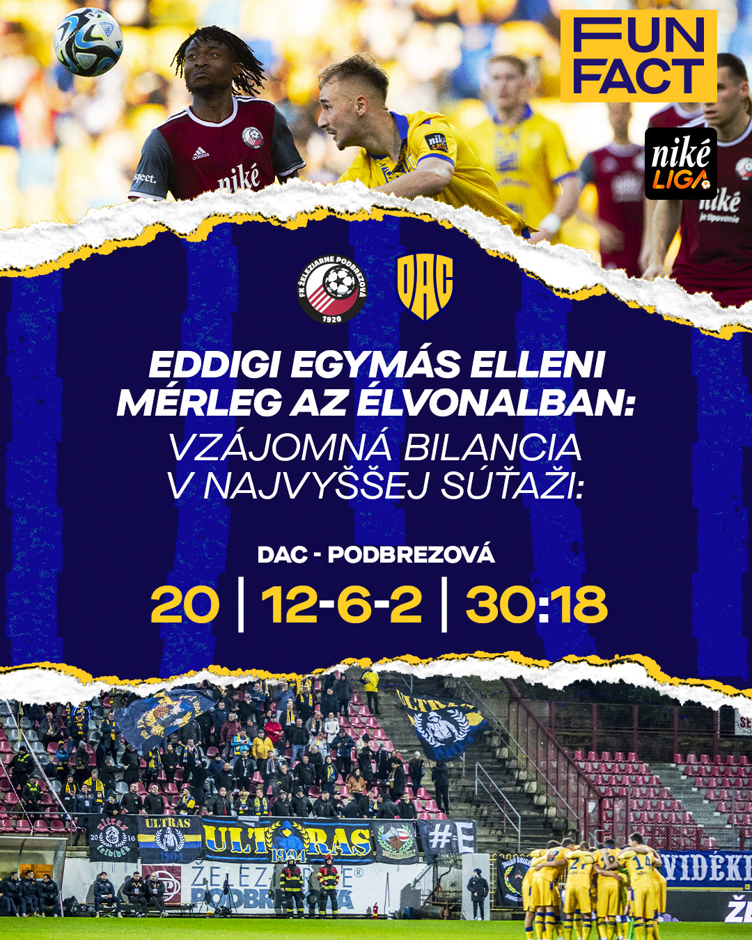 V najvyššej súťaži máme za sebou 20 vzájomných stretnutí, ktorých bilancia je naklonená DAC-u. Na pôde bordových zo 4-tisícovej obce v breznianskom okrese sme hrali deväťkrát a platí, že pokiaľ sme skórovali, vyhrali sme. Stalo sa tak trikrát, v štyroch prípadoch sme odchádzali s bodom (zakaždým 0:0) a dva razy vyhrali domáci - pri našej vôbec prvej návšteve v septembri 2014, a potom vlani v nadstavbe.