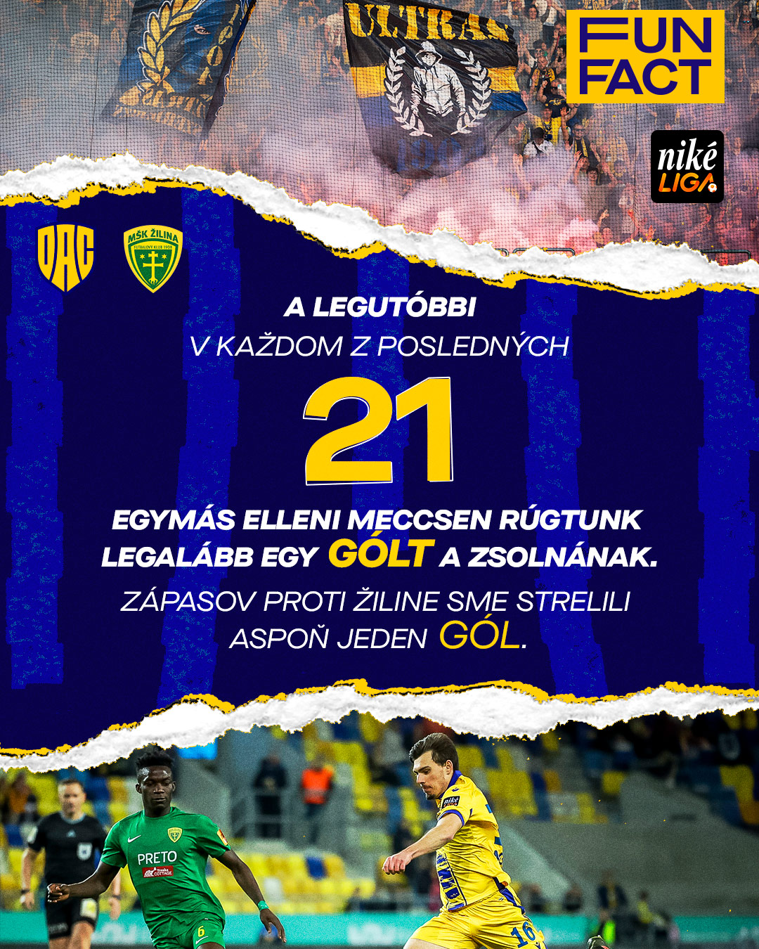 21.10.2023 - Žilina-DAC 5:1, góly Ďuriš 2, Jambor (11m), Leinter, Rusnák - Csinger, 2562 divákov