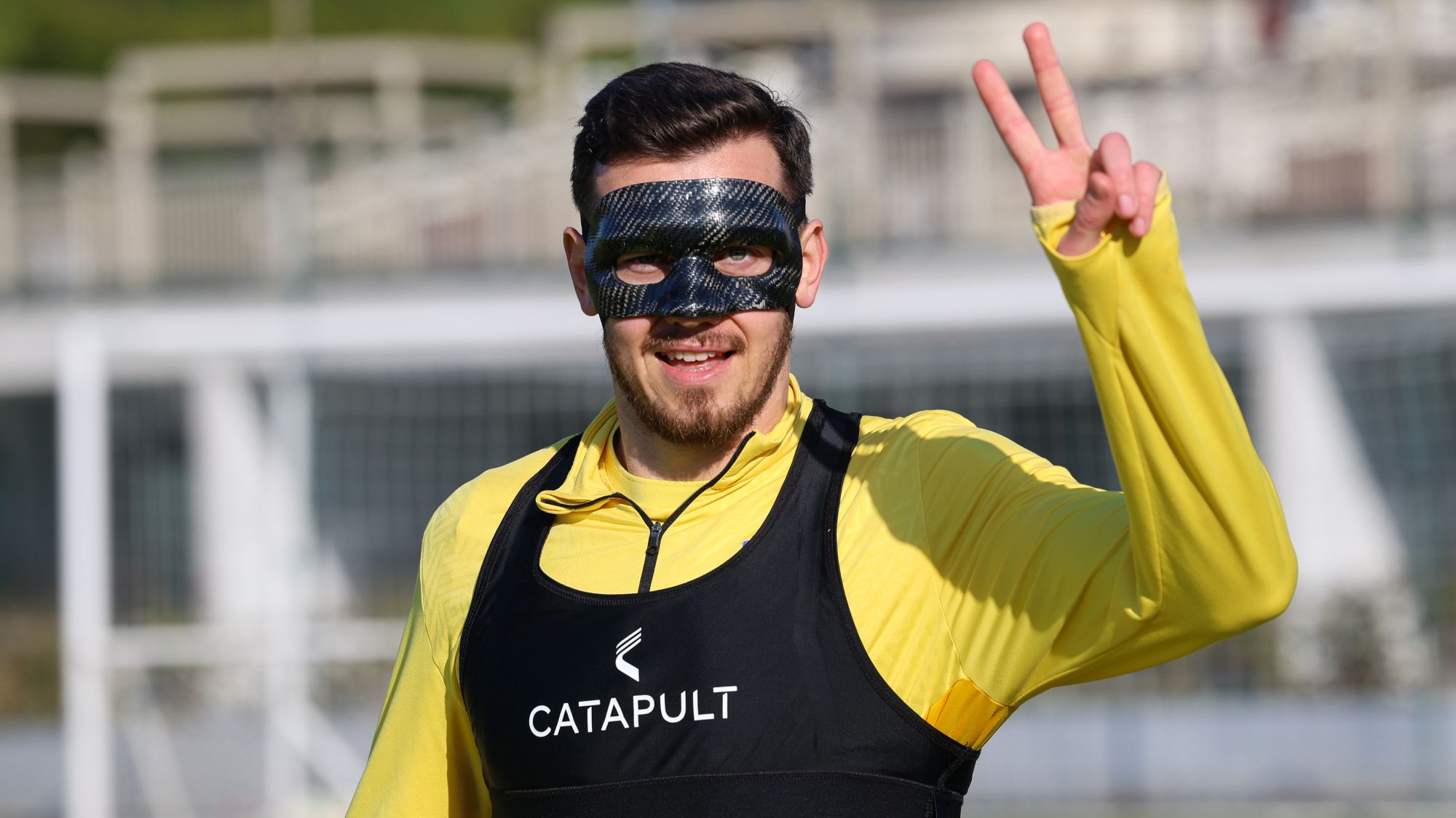 „Hrá sa mi v nej super. Náš klubový lekár Zsolt Fegyveres vybavil špecialistu, ktorý mi ju výborne nastavil. Podobné zranenie mám druhý raz, prvýkrát sa mi to stalo ešte v Slavii, kde som si takisto zlomil tvárovú kosť. Taký je futbal. Zranil som sa v poslednom jesennom kole na Slovane. Neviem ešte, dokedy budem nosiť masku, po návrate domov zo sústredenia na čaká kontrola u lekára, ktorý ma operoval. Vložil mi špeciálne titánové platničky, takže to musí skontrolovať a potom budeme vedieť, ako dlho musím ešte hrávať v maske. Pokiaľ sa nám bude dariť, možno si ju nechám (smiech).“