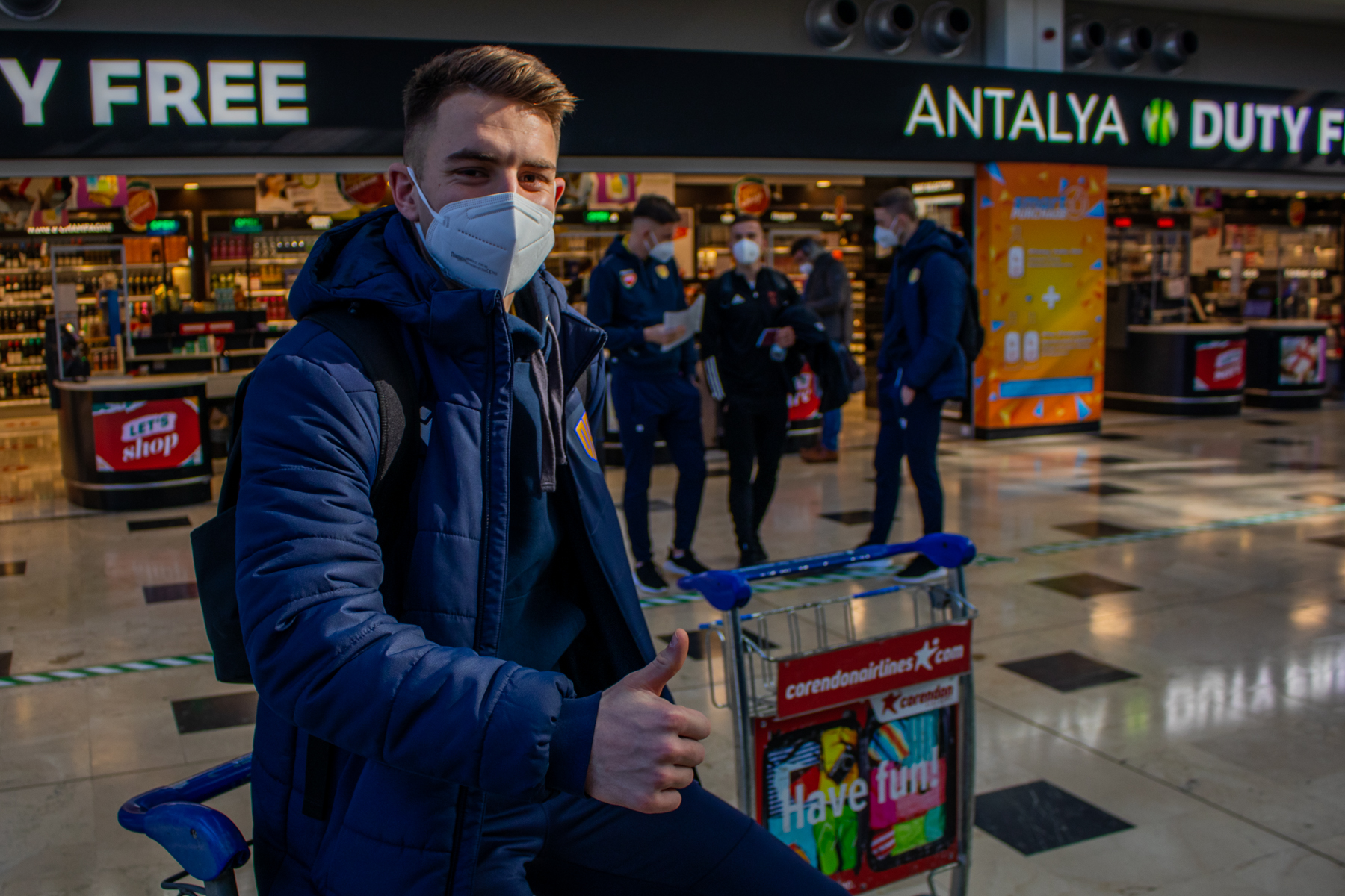 Po nočnom vstávaní väčšina mužstva cestu využila na oddych a dospávanie, pozerali sa ale tiež filmy, hrali hry a vo viacerých rukách sa objavili aj knižky. Na letisku v Antalyi si každý našiel svoju batožina. Dorazili aj všetky prepravné boxy s výstrojom, loptami a ďalšími tréningovými pomôckami, čomu sa najviac potešili kustód Marián Gódány s vedúcim mužstva Gáborom Antalom.
