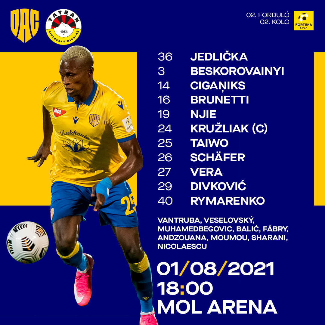 Jedlička - Kružliak, Beskorovainyi, Brunetti - Vera, Schäfer, Njie, Ciganiks - Rymarenko - Divković, Taiwo.