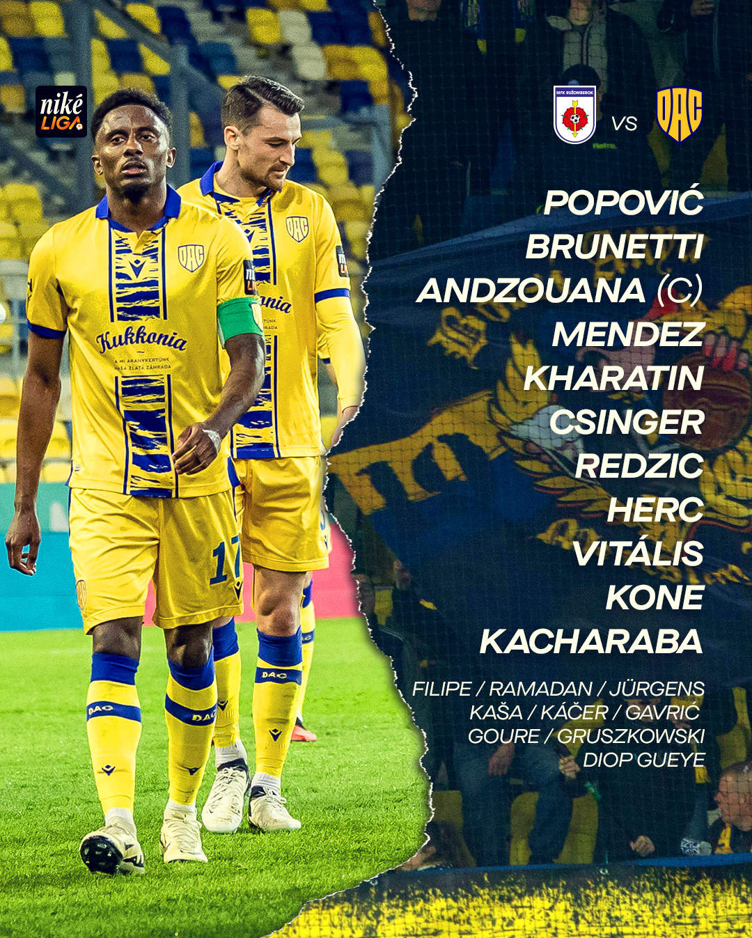 Popović - Csinger, Kacharaba, Brunetti - Andzouana, Vitális, Kharatin, Herc, Mendez - Koné, Redzic